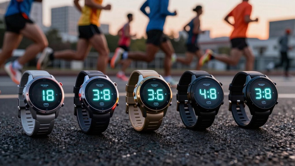 Did you know some marathon sports watches can last up to two weeks on a single charge? I’ve found that most of these watches offer around 10 to 14 hours of continuous GPS use, perfect for long races. For training, they often last several days in smartwatch mode. If you’re planning a multi-day event, look for models with extended battery life, so you’re powered throughout your run.