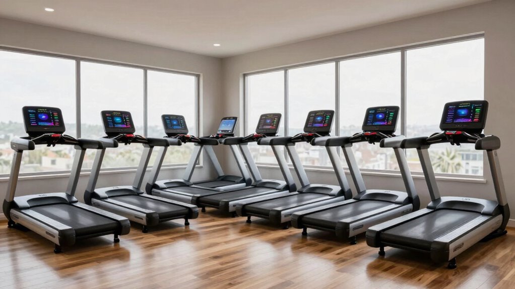 - Treadmills with customizable interval programs, multiple preset routines, and app control for seamless workout adjustments.