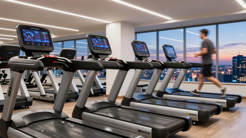 Did you know that an incline range of 0-15% can substantially boost workout versatility? I find that a wider incline range allows me to simulate hill running, target different muscle groups, and vary intensity easily. It keeps workouts engaging and effective. The more incline options available, the more tailored my sessions become. So, if you’re after versatility, look for treadmills with a broad incline spectrum—they’ll really expand your training possibilities.