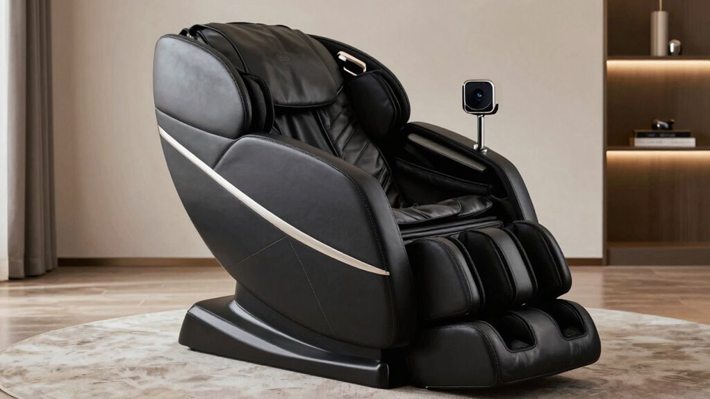 Ever wonder how well a massage chair can truly relax your entire body? The key is its massage range and coverage. A good chair should target not just your back, but also your neck, hips, arms, legs, and feet for full-body relaxation. Look for models with adjustable rollers and airbags that let you personalize your experience, focusing on specific areas or covering everything at once. Check if the massage track, like SL-Track or L-Track, extends enough to reach from your neck down to your hips or thighs for a thorough massage. Features like auto body detection or customizable zones help adapt coverage to your body shape. Multiple massage techniques and preset programs also enhance coverage, ensuring you get a holistic, tailored relaxation session.